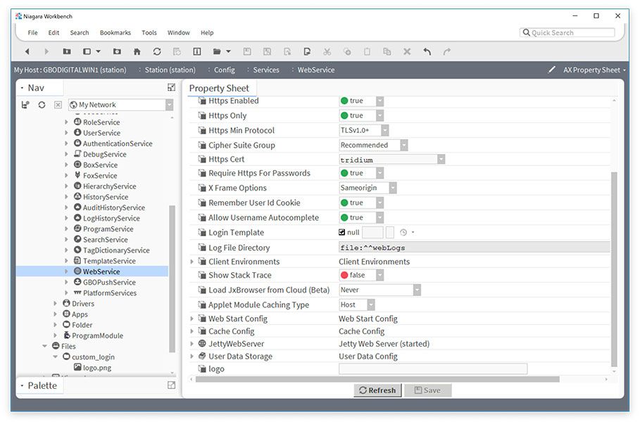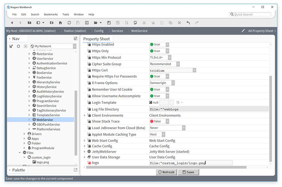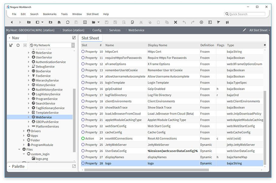 We have to tell Niagara that we want to use a custom logo and where our logo file exists. We do this by adding a slot on the WebService.