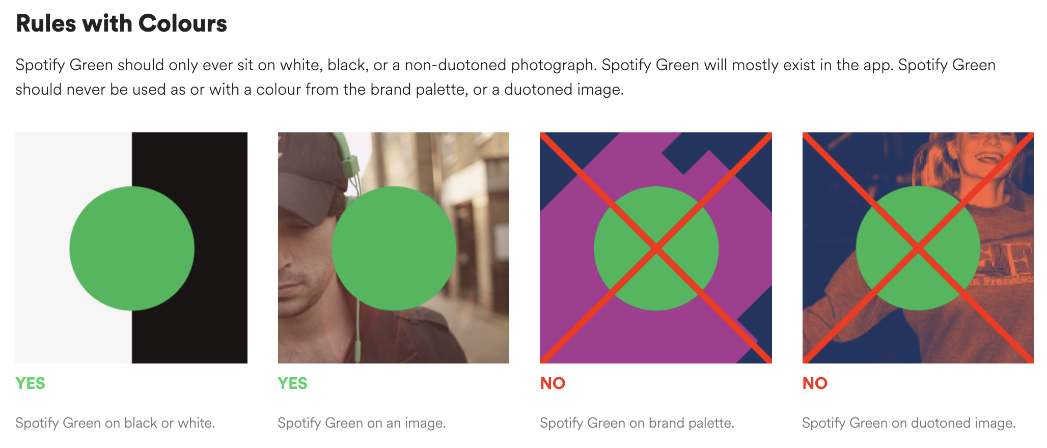 Here is an example of a simple yet powerful brand guideline from Spotify.