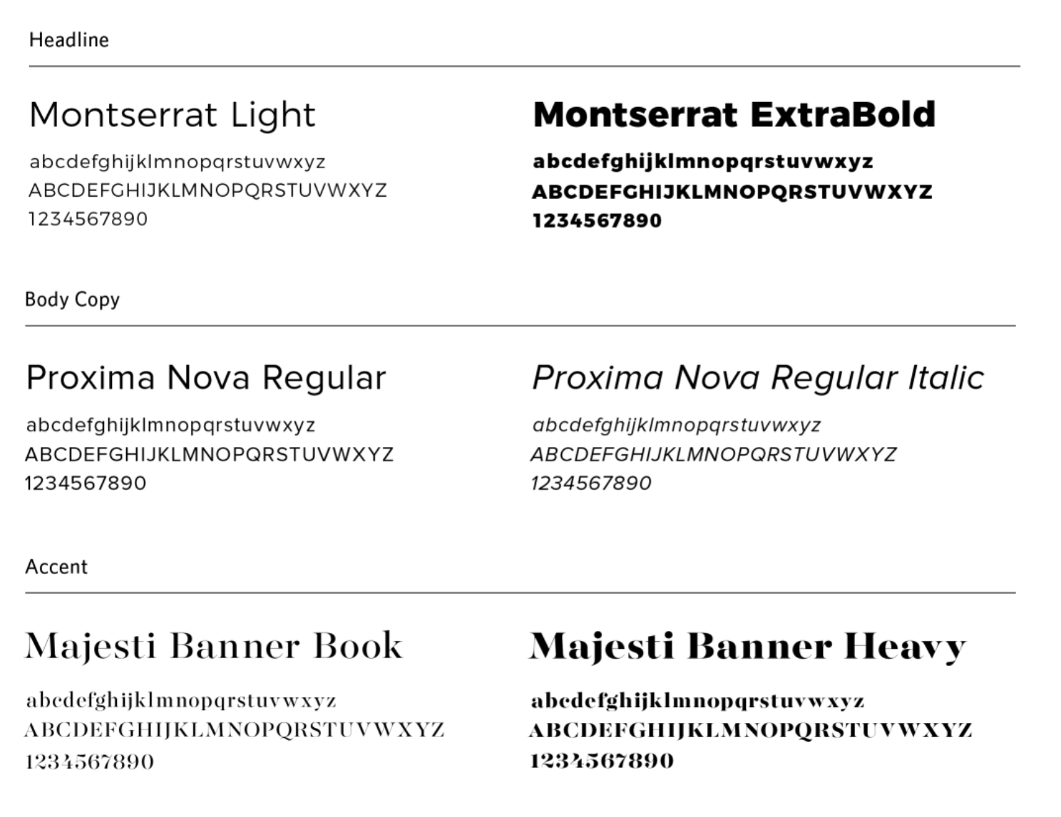 Fonts are another important element of a companies brand guidelines. Most brand guidelines will assign certain fonts for use on the web or in print materials and have assigned fonts for headlines (titles) and body copy (regular text).